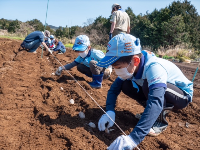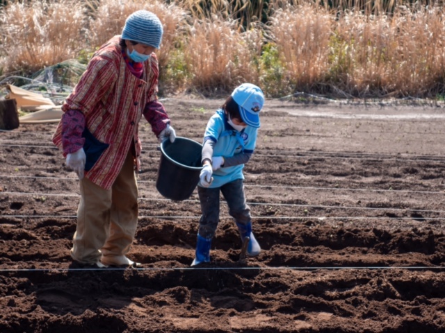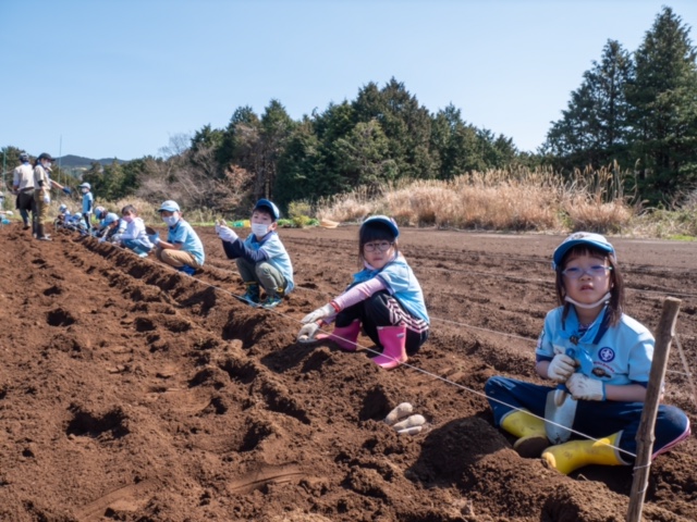 今の季節はジャガイモの植え付けの時期ということで種芋を植えます。