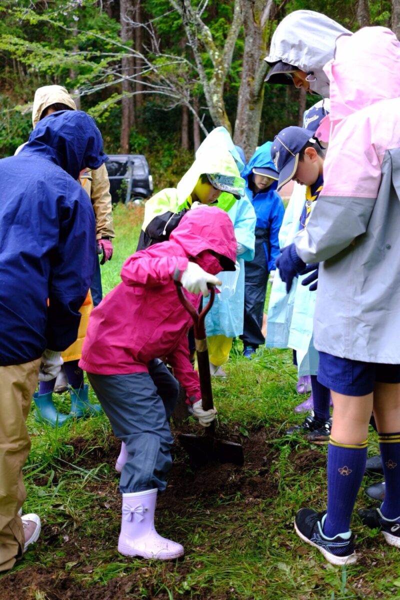 雨の中、たくさんのスカウトがこ協力して植える事が出来ました。