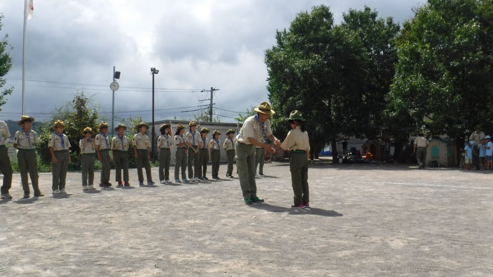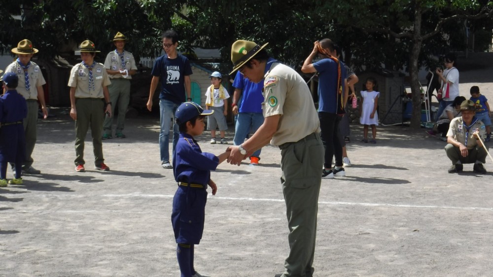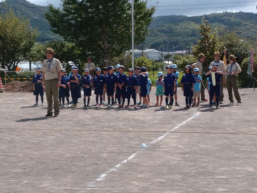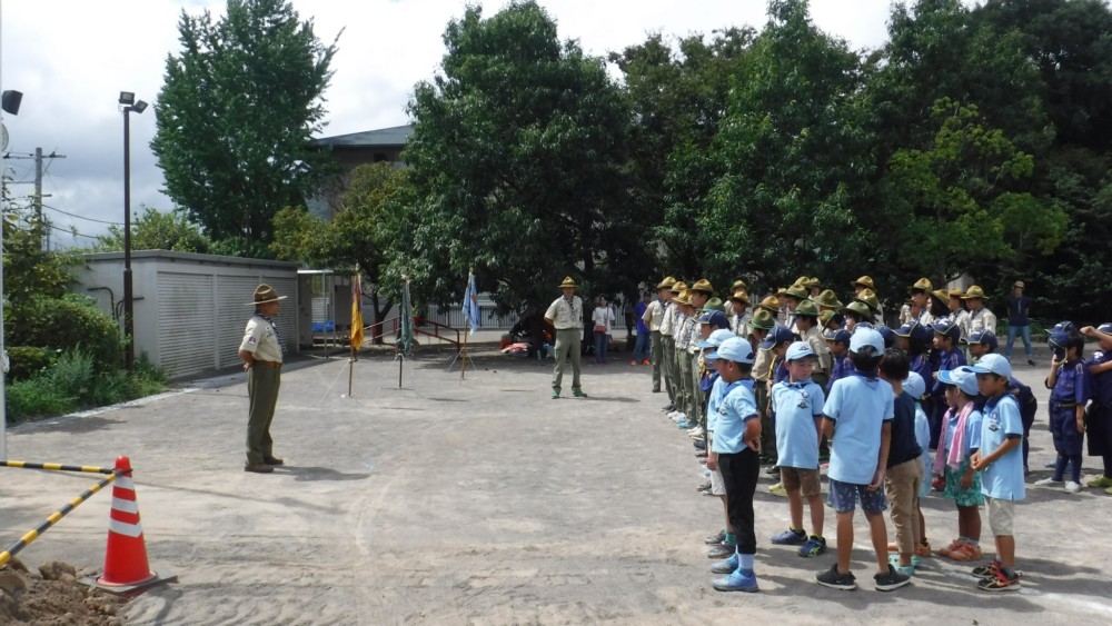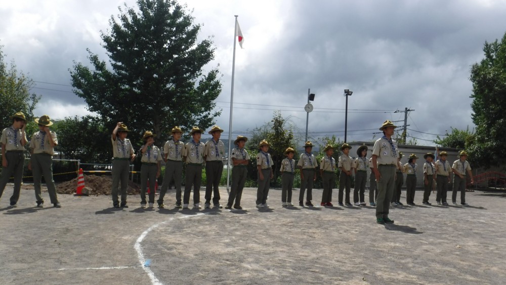 台風が接近する中、ビーバー隊からカブ隊への上進スカウト達とカブ隊からボーイ隊へ上進するスカウト達の追い出し式が行われました。