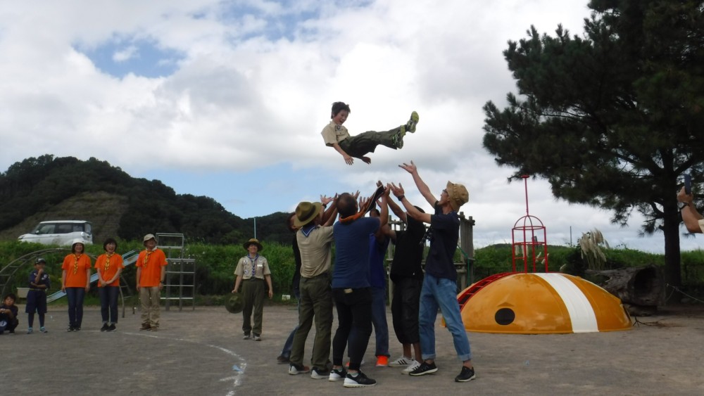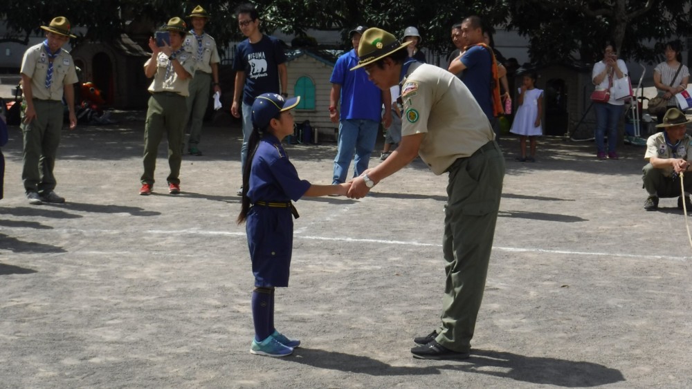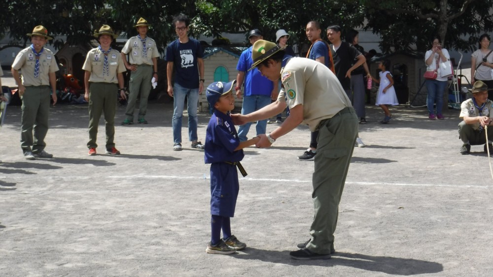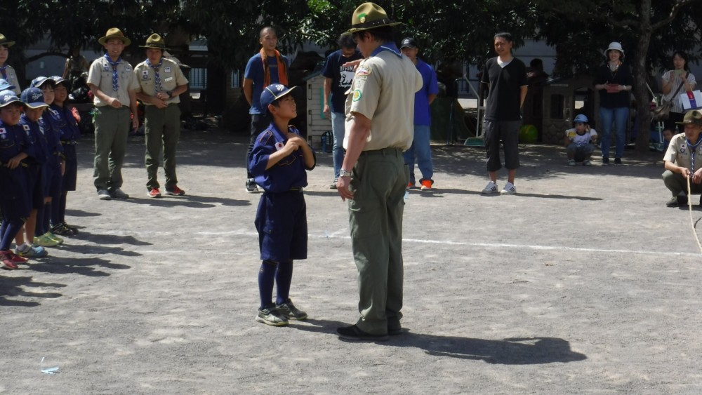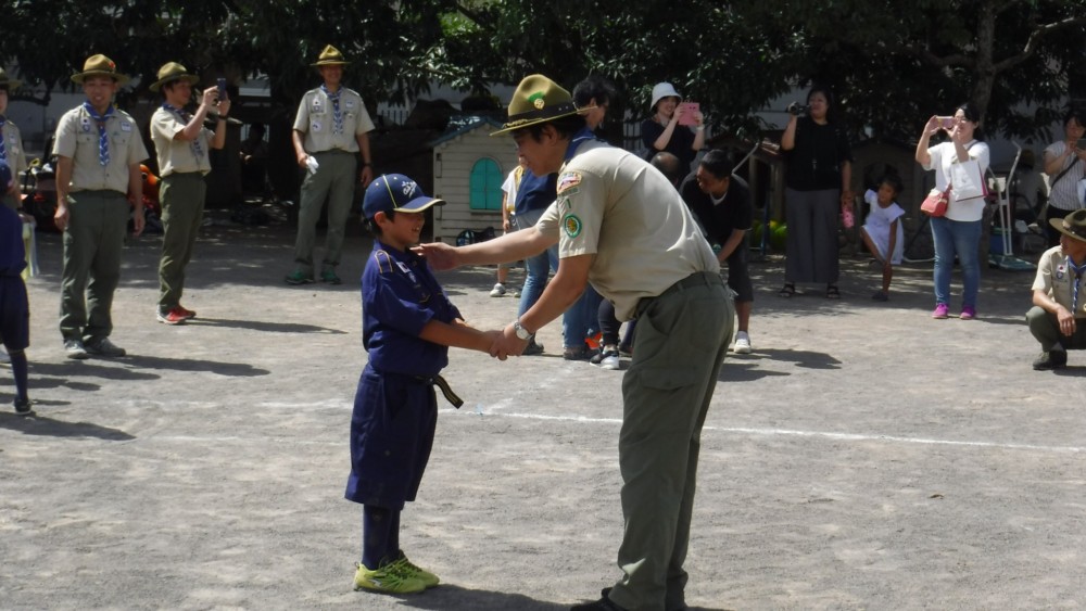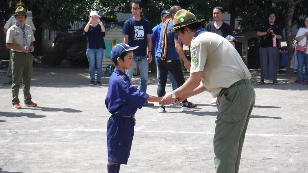 台風が接近する中、ビーバー隊からカブ隊への上進スカウト達とカブ隊からボーイ隊へ上進するスカウト達の追い出し式が行われました。