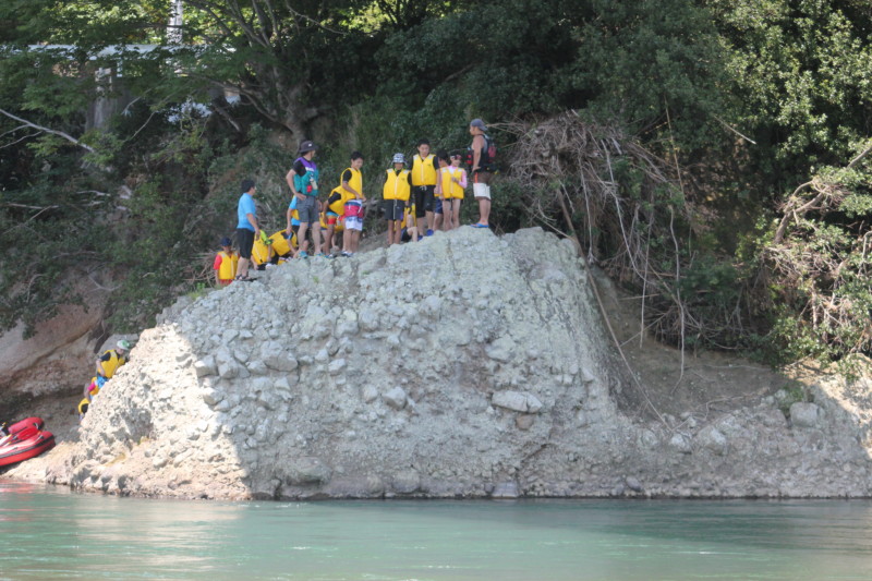 続いては川の対岸に泳ぎ、度胸試しの飛び込みに挑戦しました。
