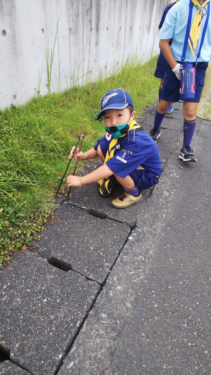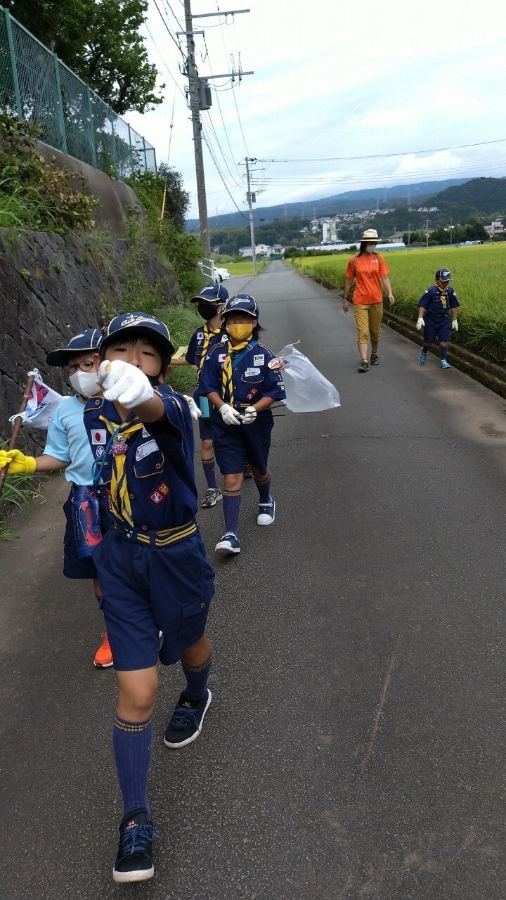 午後からは、出来上がった組旗を持って、道路に落ちているゴミ拾いをしました