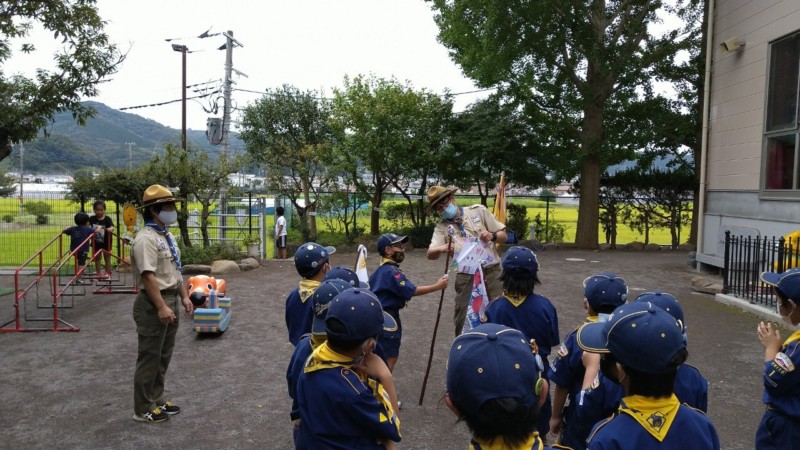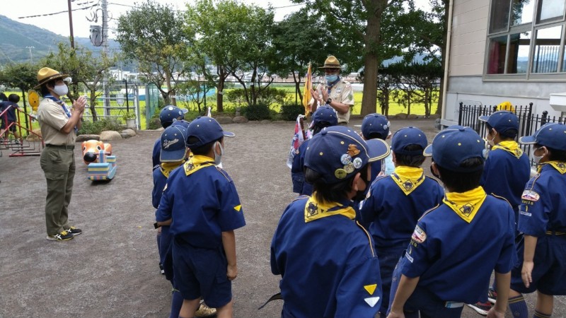 今日はカブ隊にとって大事な旗揚げの歌を練習します。