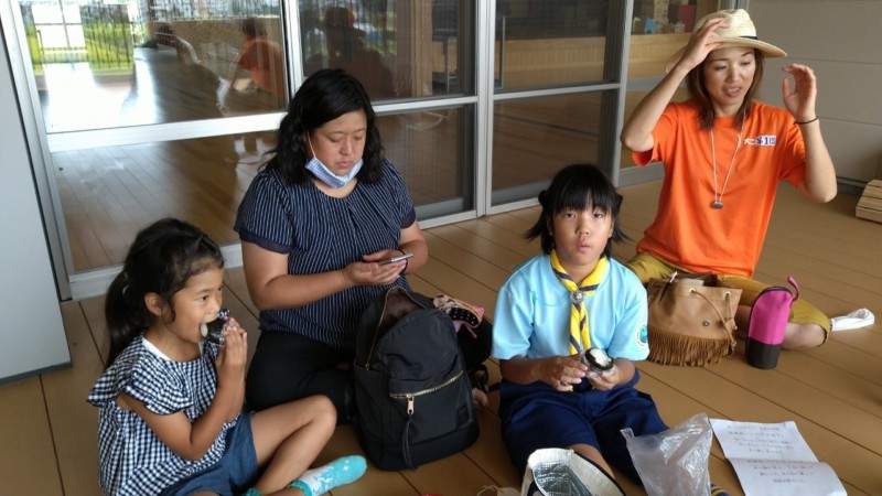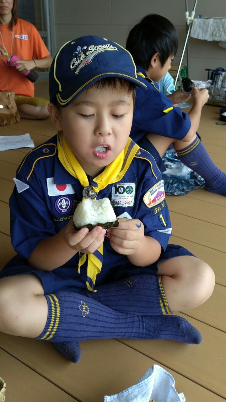 昼食は、組ごとにスカウト弁当(おにぎり)をいただきます。