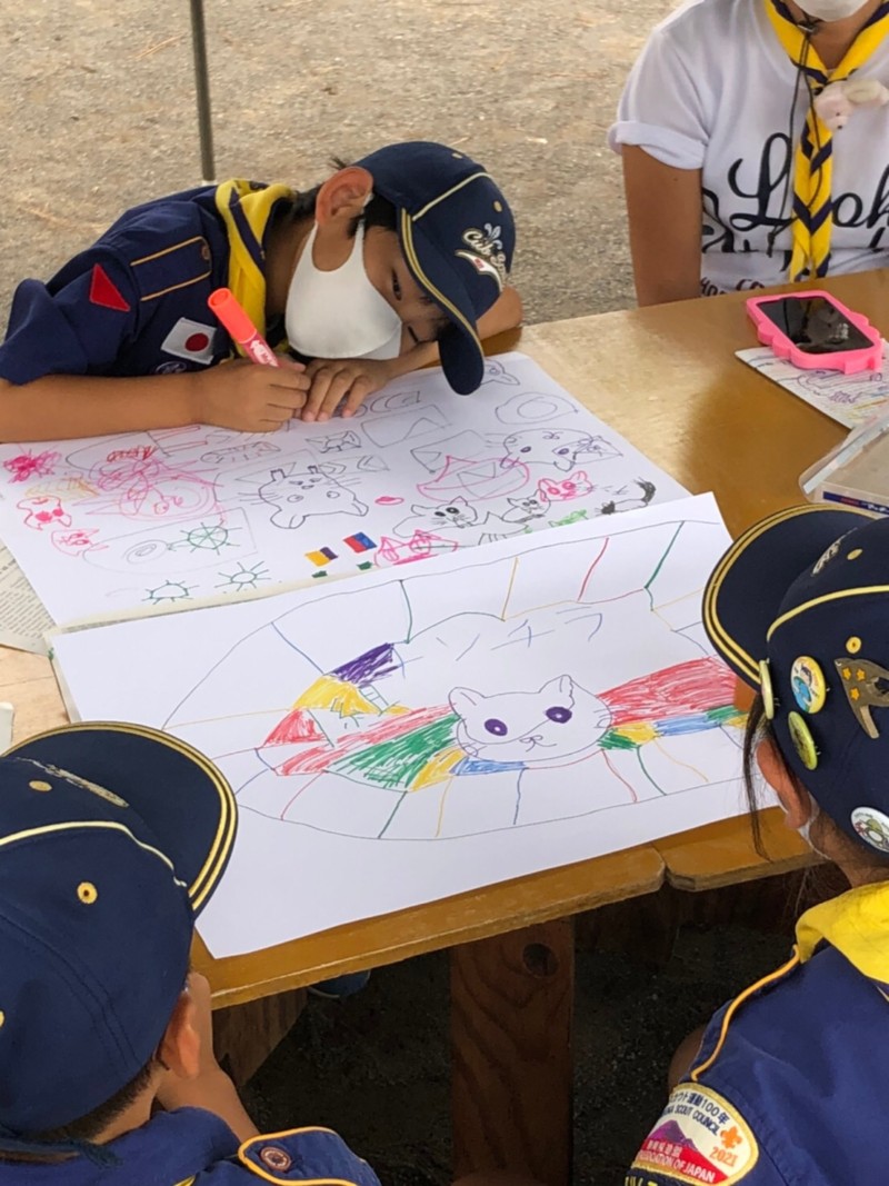 組集会で旗づくりがデンリーダーと組長を中心に始まりました。