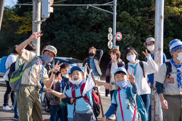 ミカンを食べ終わったカブ隊はこれから葛城山に登ります。