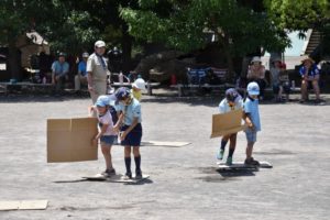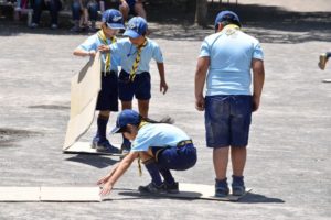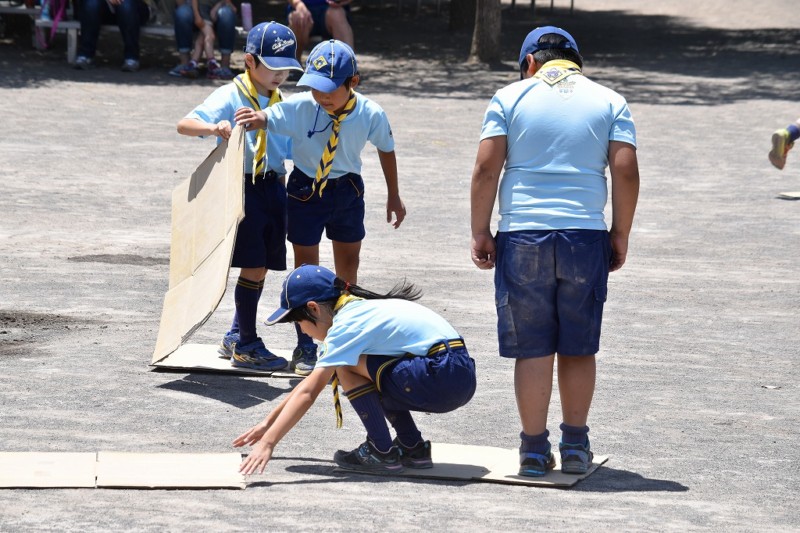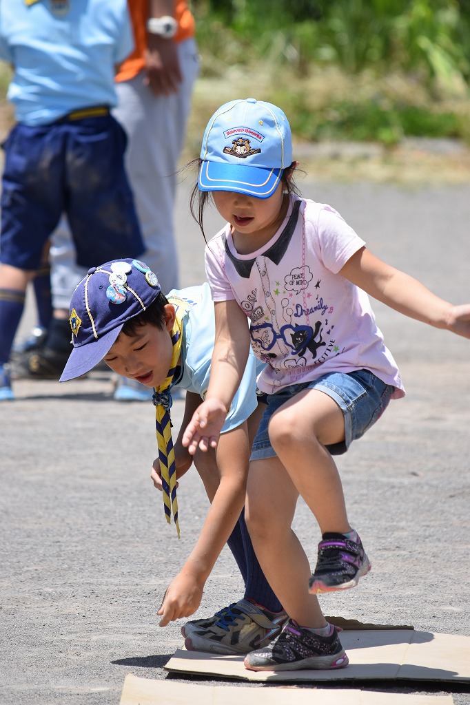 ミニ運動会 2017年6月4日 カブ隊 ビーバー隊 by bs-oohito-blog. 今日はカブ隊とビーバー隊でミニ運動会を行いました。 天気にも恵まれ(と言うか日焼けが・・・)みんな楽しそうに各競技を行っていました。 自分の帽子を探し出す競技 ボールを足に挟んで進み、きれいに敬礼が出来るか確認する競技 (当然ちゃんと敬礼が出来ないとやり直しです!) 定番のパン食い競争 割り箸の入ったビンに水を入れていき、浮いた割り箸を取り出す競技 ダンボールの上に乗りダンボールを運びながら前に進んでいく競技 1位の組はみんなの前で表彰されました。 前の記事 次の記事
