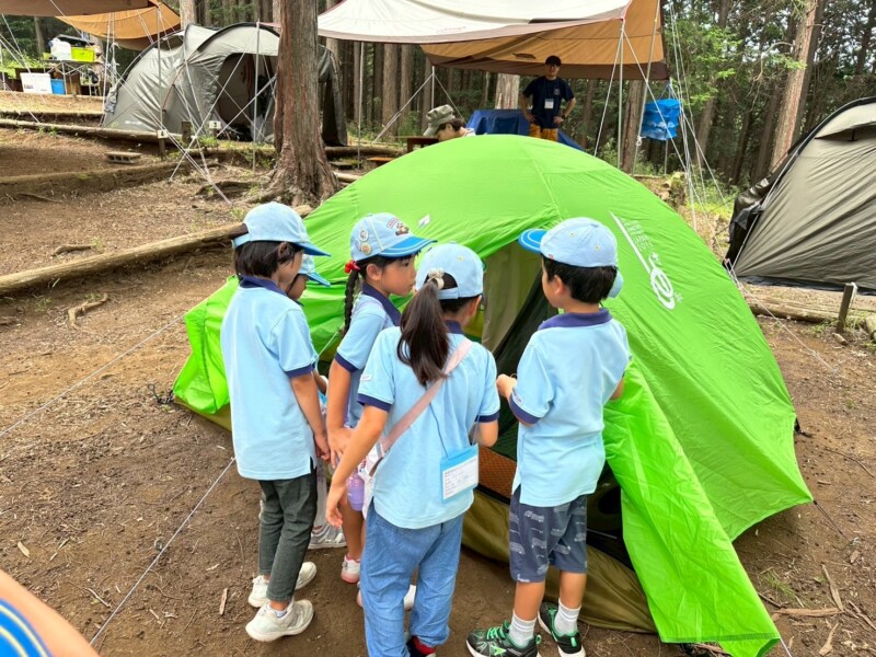 午後はボーイ隊のテントサイト見学やアスレチック、工作を楽しみました。