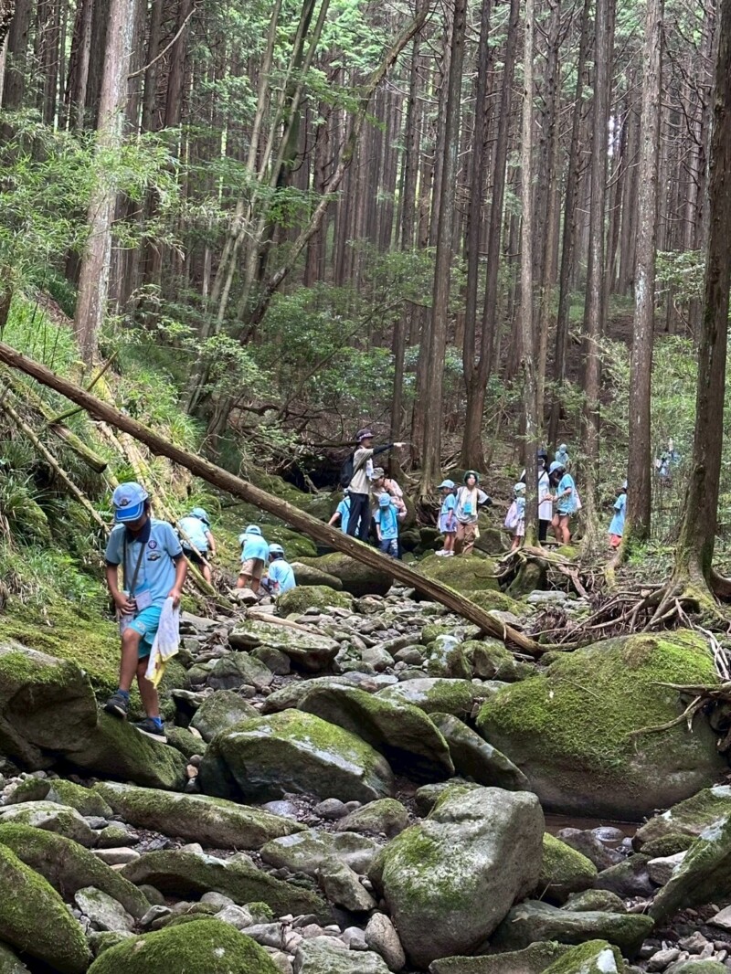 午前中はハイキングでサワガニの赤ちゃんを見つけて大興奮。