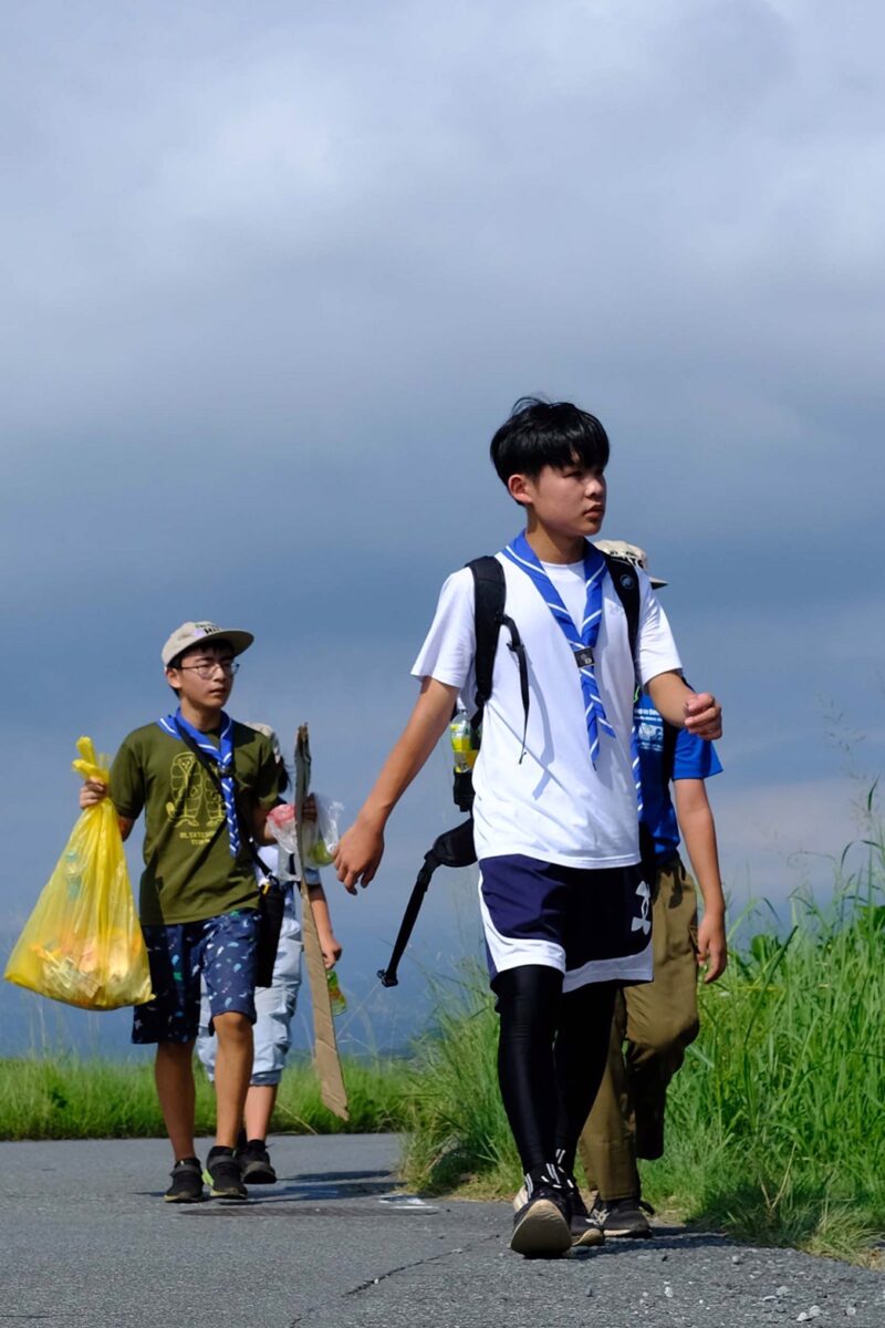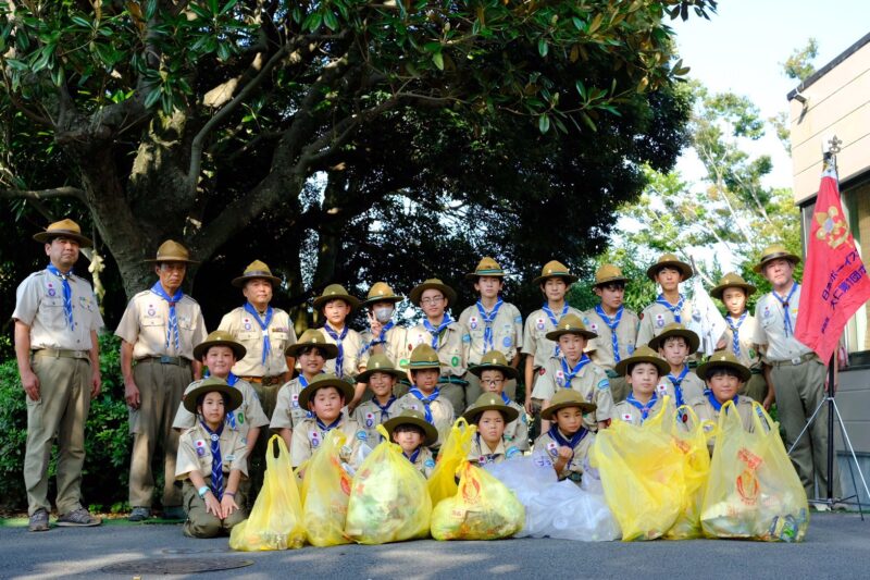 2日目はキャンプ終了後に、スカウトの日の奉仕活動を、スカウトの森から慈恩こども園までごみ拾いを実施しました。