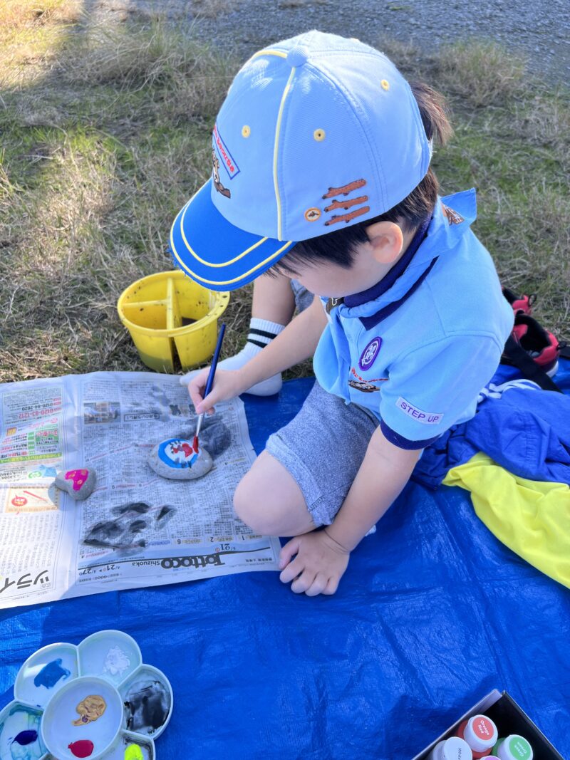 今日はお天気にも恵まれ、河原で「ストーンアート」を行いました。