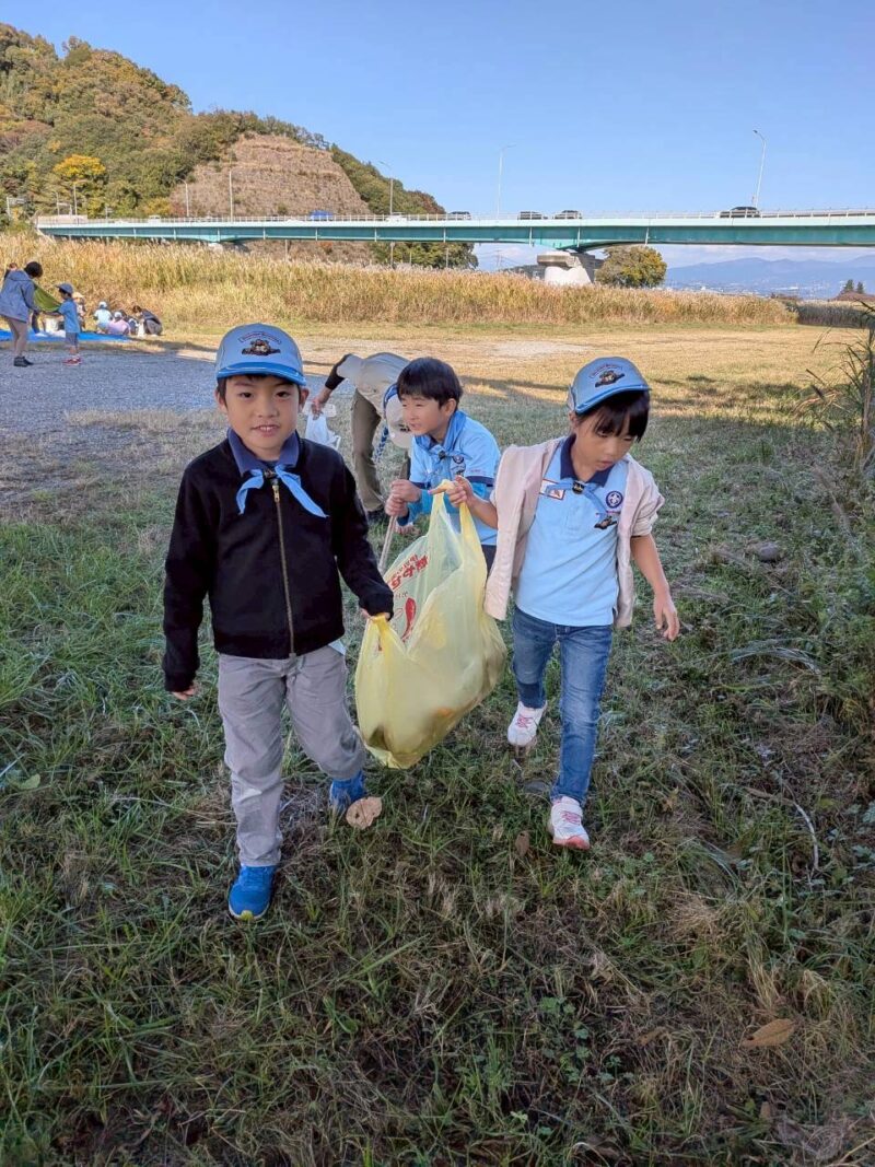 最後は、河川敷に落ちていたゴミをみんなで拾ってクリーンアップ。