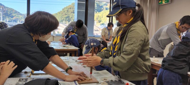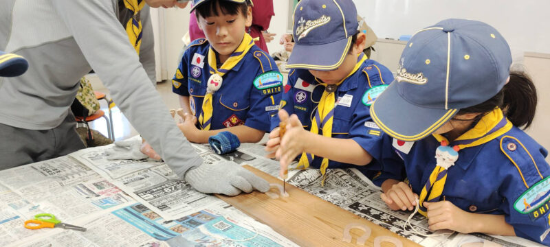 午前中は工作。竹や木材を使った3種類の知恵の輪を作りました。