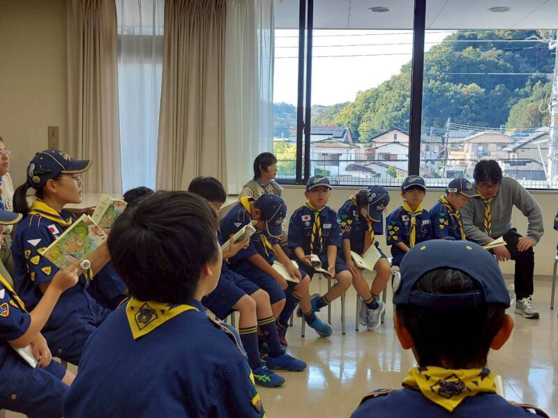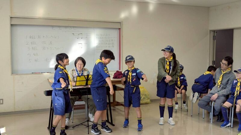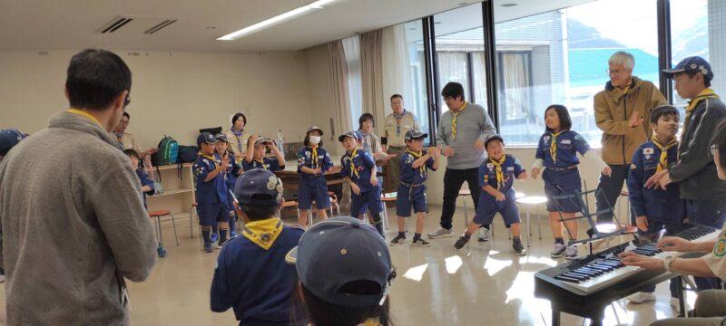 午後は函南第2団カブ隊隊長による歌の活動です。