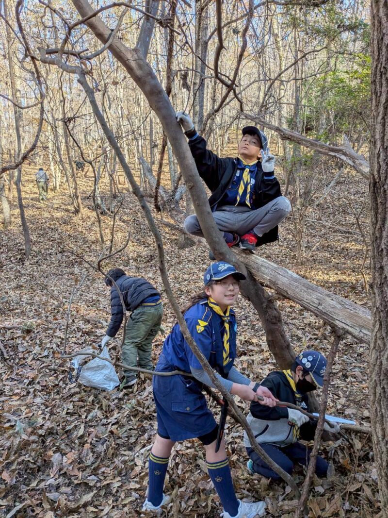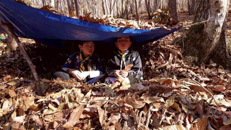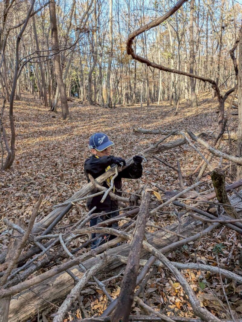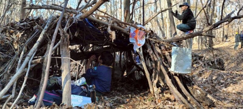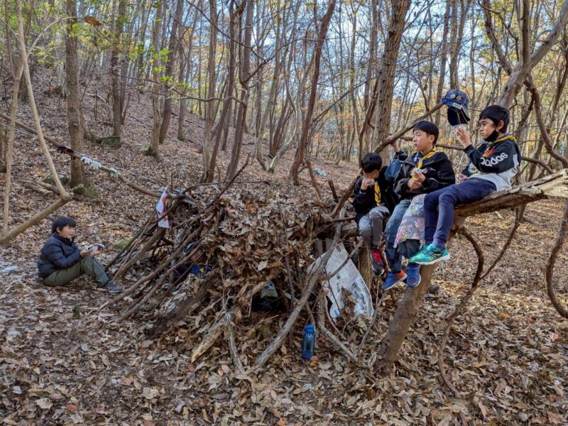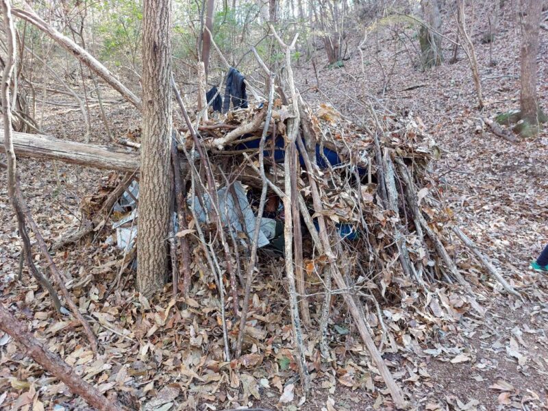 2本の木に別の木を渡して梁にしたり枝で壁を作ったり