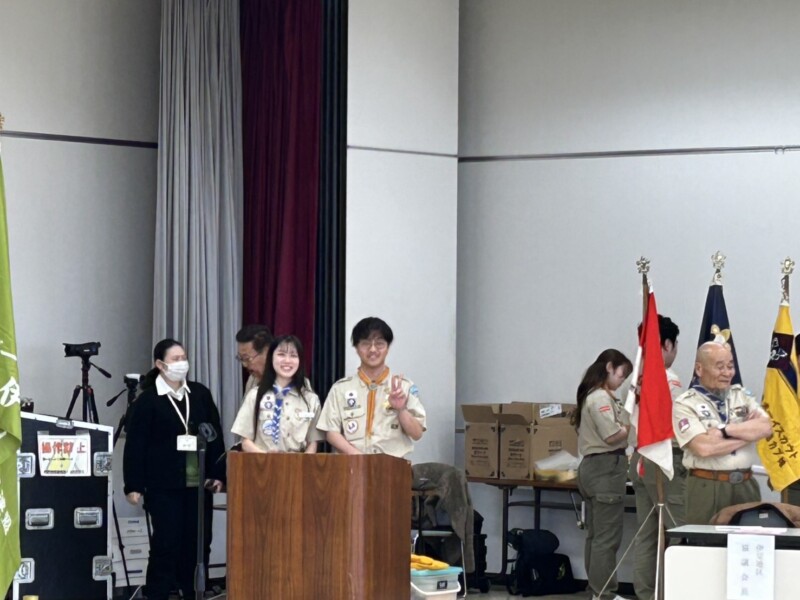 プログラム終了後、本年度ローバー隊を卒業し、BS隊の副長になるN先輩の卒業祝いのセレモニーを行いました。