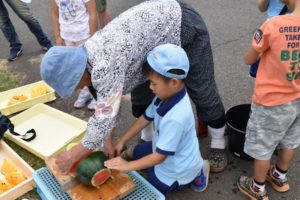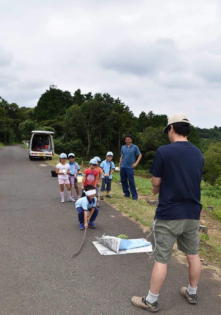 道路・・・でスイカ割りを行いました。