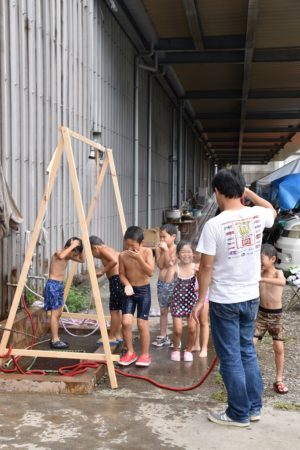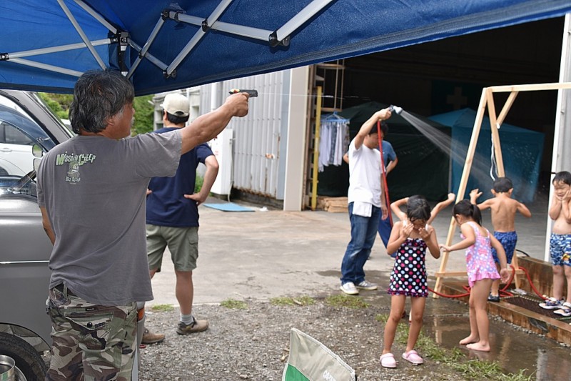 帰ってきたら水浴びです。