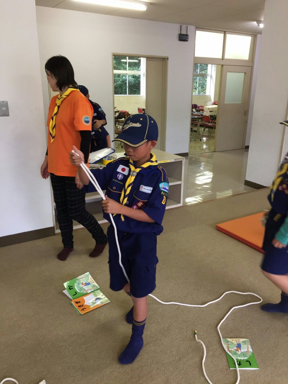 今日の活動、スカウトは外で走り回りたいところでしたが…あいにくの雨…