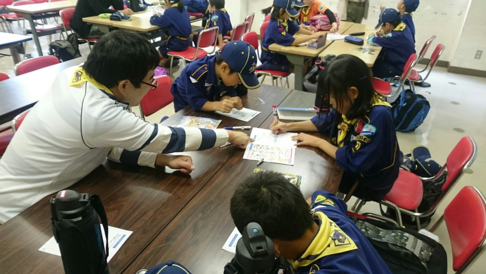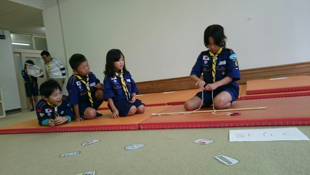 スカウト達は、合格シールをもらうため、懸命に覚えてました。