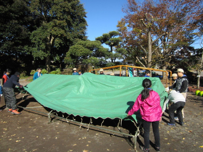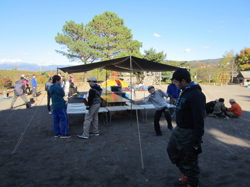 セレモニーもばっちり決まり、班長、次長のもと設営開始です。