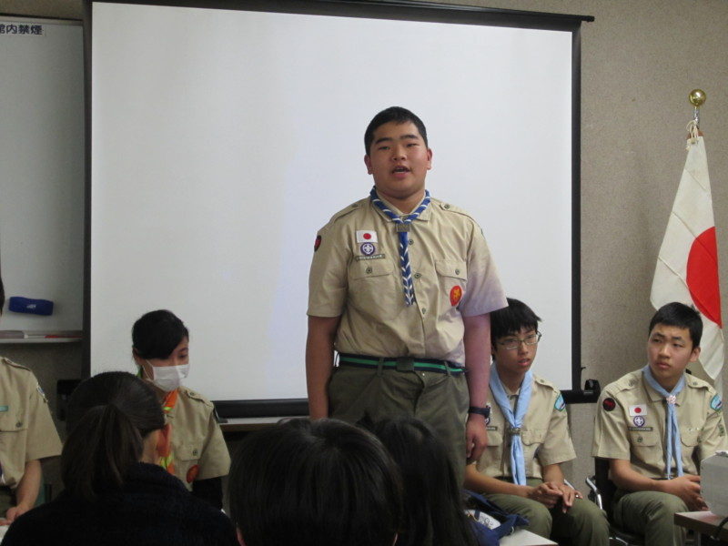 多少緊張していますが、スカウトらしく大きな声で報告しています。