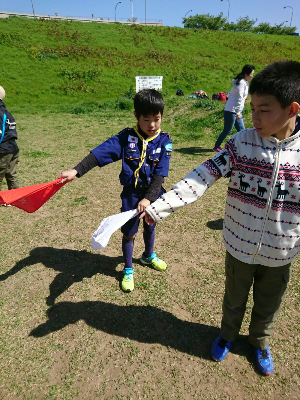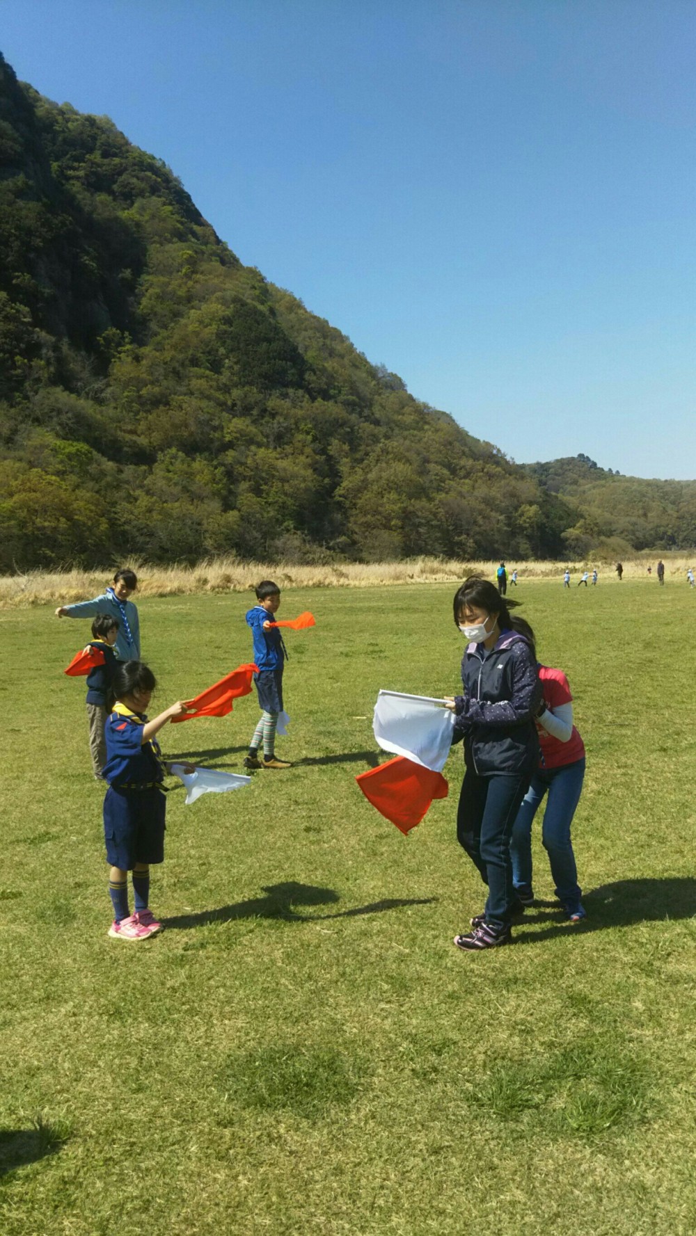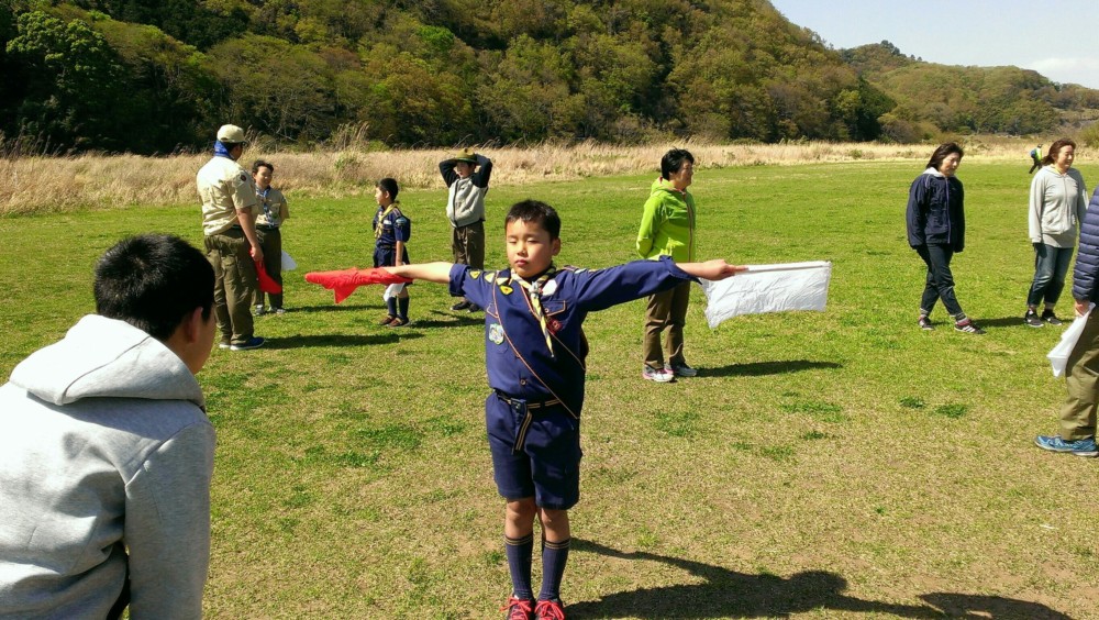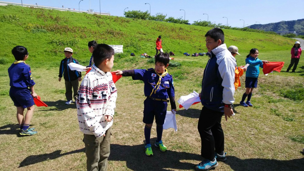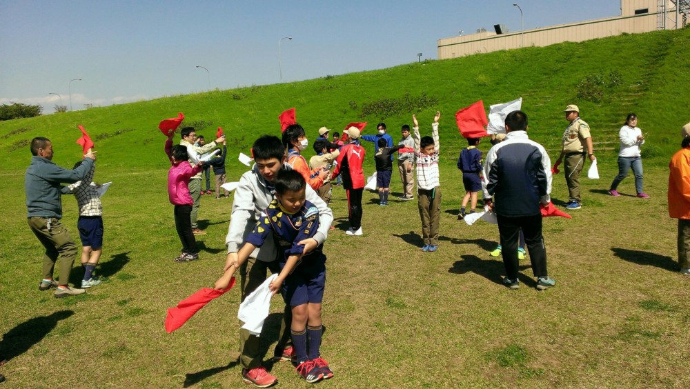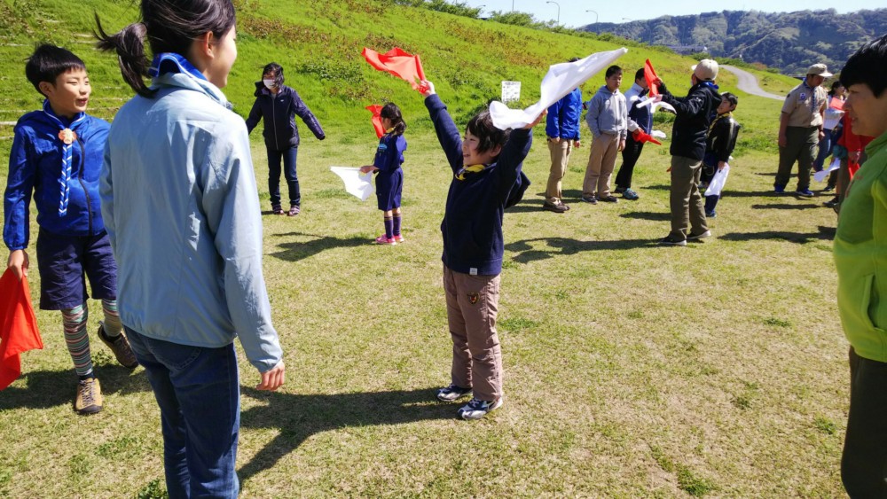 休憩後は、ボーイ隊と楽しいゲームを行い、手旗信号を教えて頂きました。