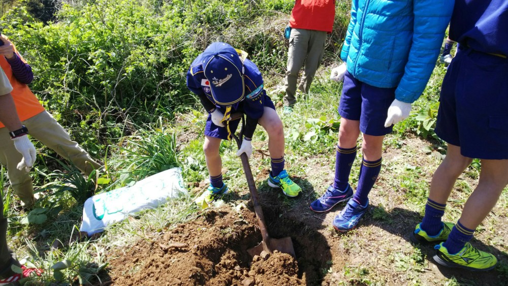 4/8 大仁中学校にて、河津桜の植樹を行いました。