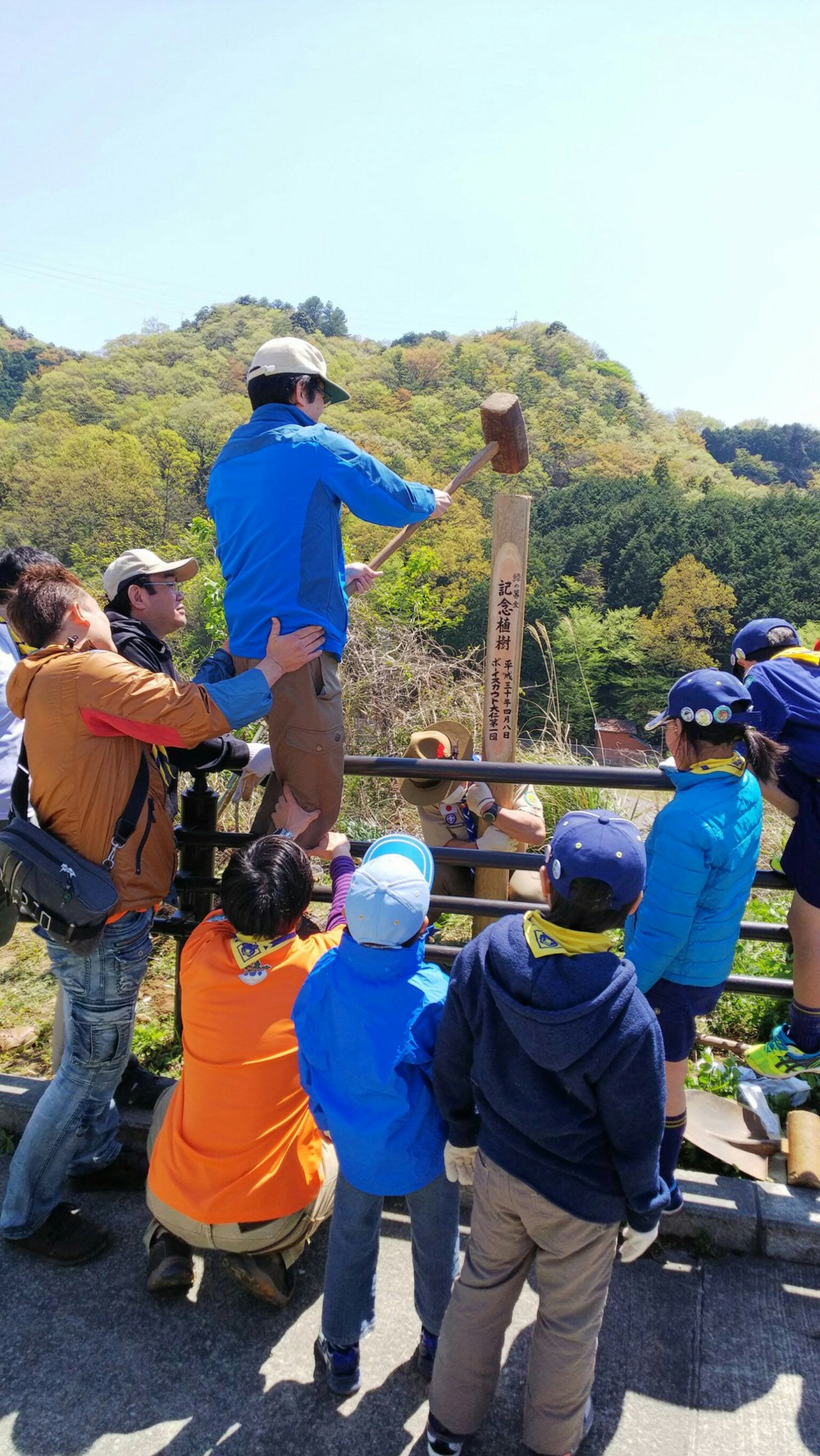 最後に記念碑を打ち込みます