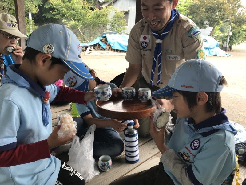 お借りして避難。えんやらやの二番を歌ってスカウト弁当をいただきました。