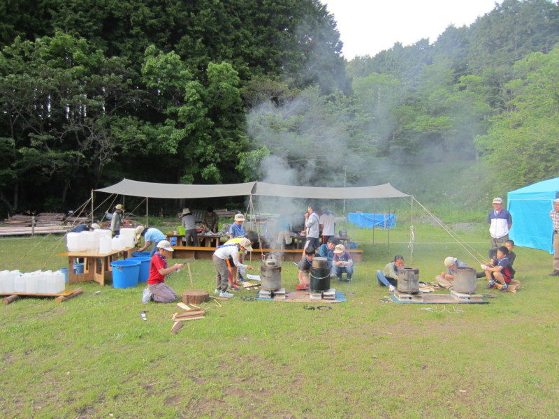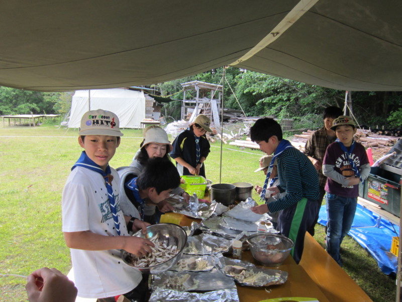 全てのスカウトが班ごとに団結して作業に取り組んでいます。