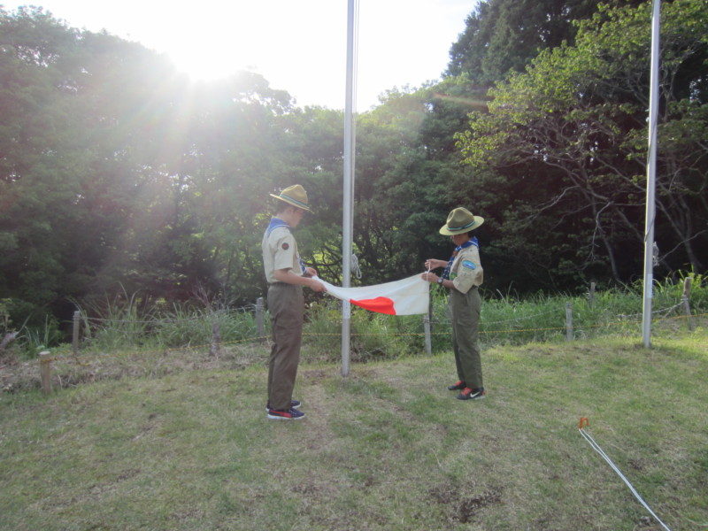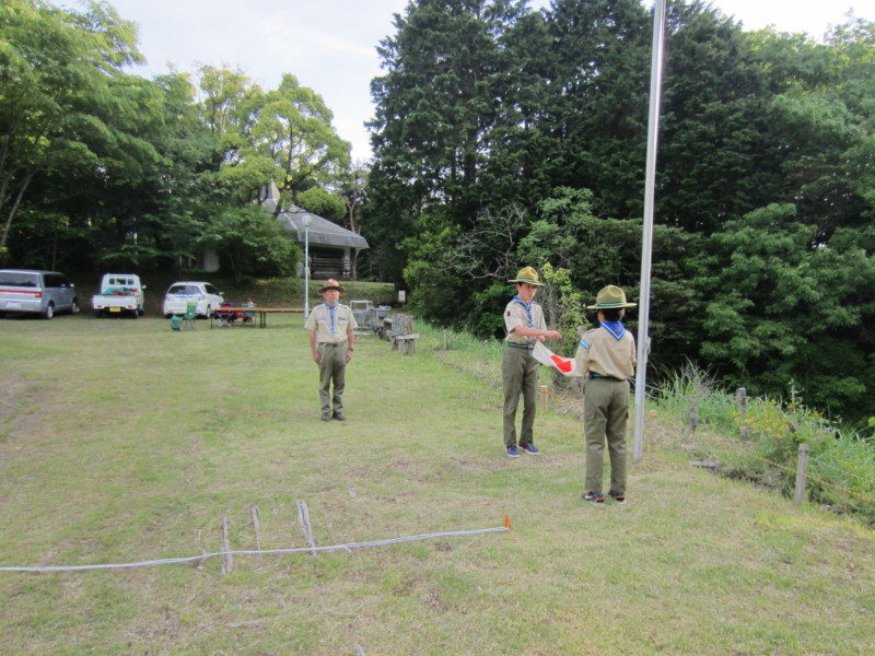 普段の隊キャンプとは違い決められたスペース(サイト)の中ですべての設営を行います。 大きさ25m×25m