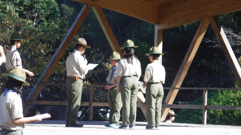 今年の夏に日本ジャンボリーが開催され、ジャンボリーに参加した指導者の解任式が行われました。