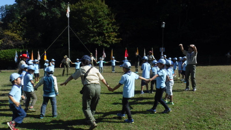 最後にボーイ隊、カブ隊、ビーバー隊が一緒になって、ワイドゲームをしました。