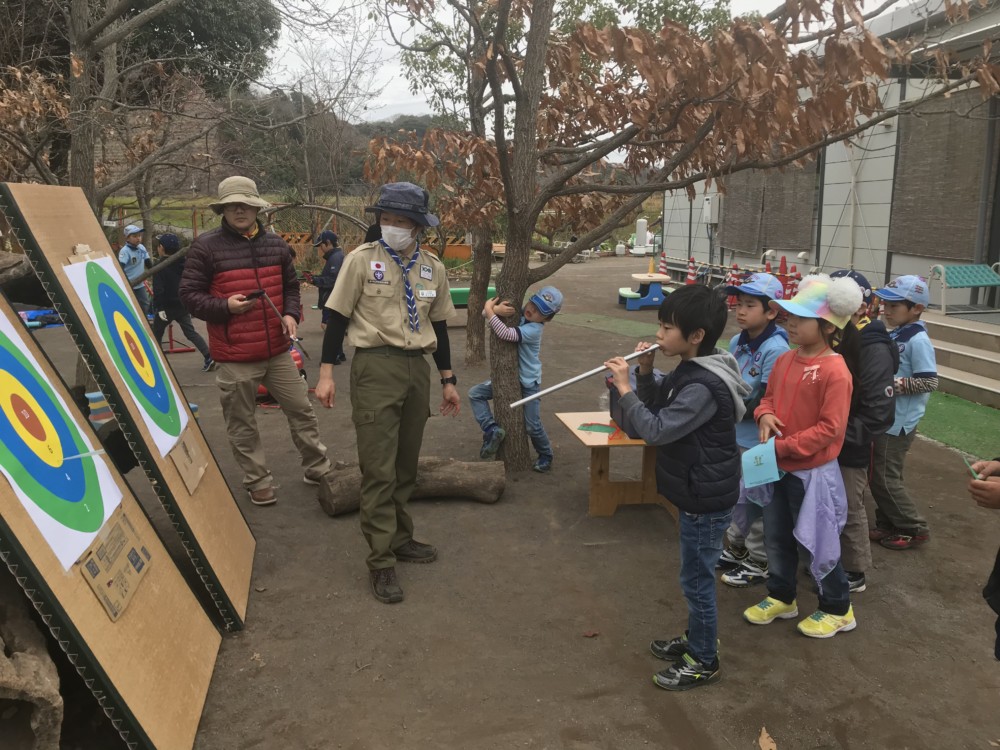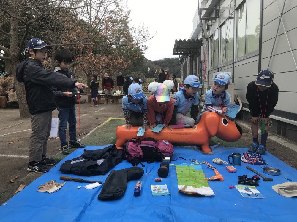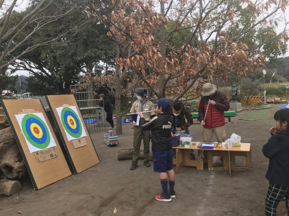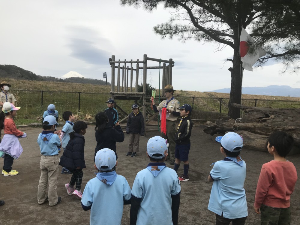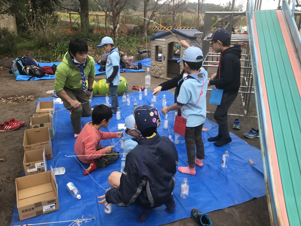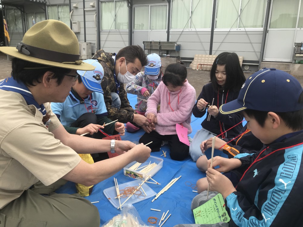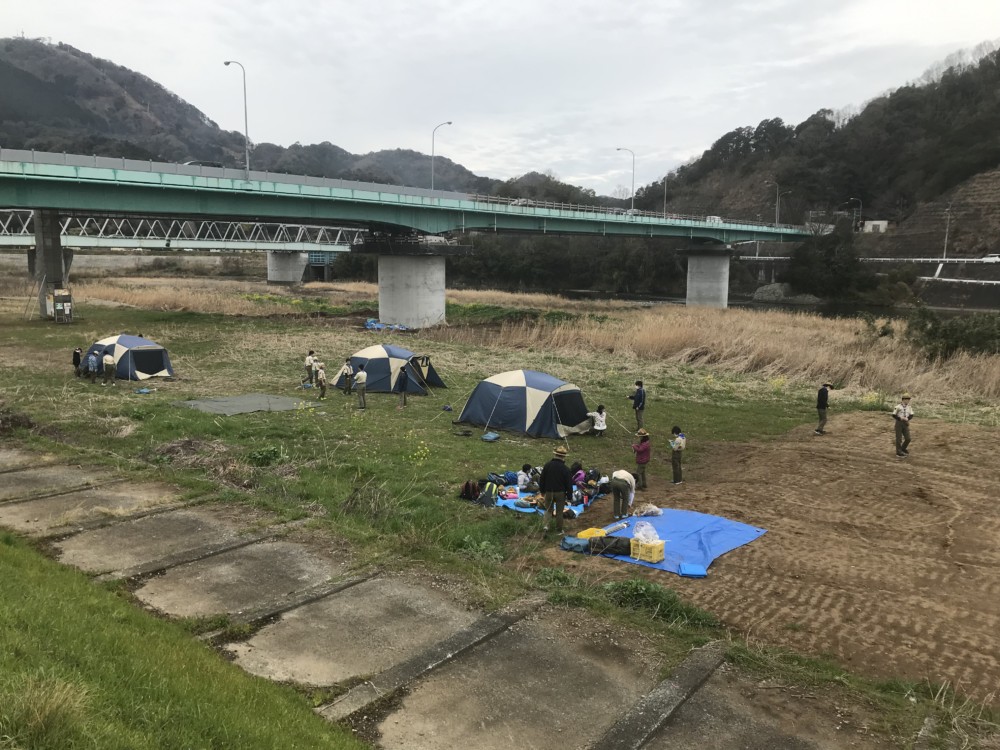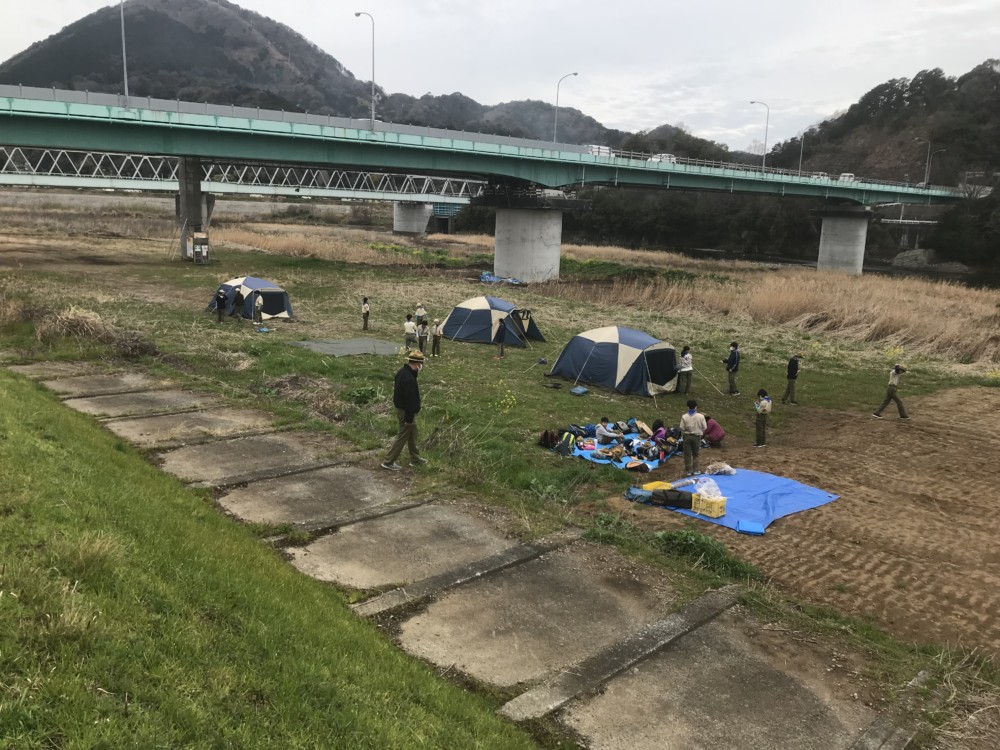 ボーイ隊は河川敷でテントとフライの設営訓練