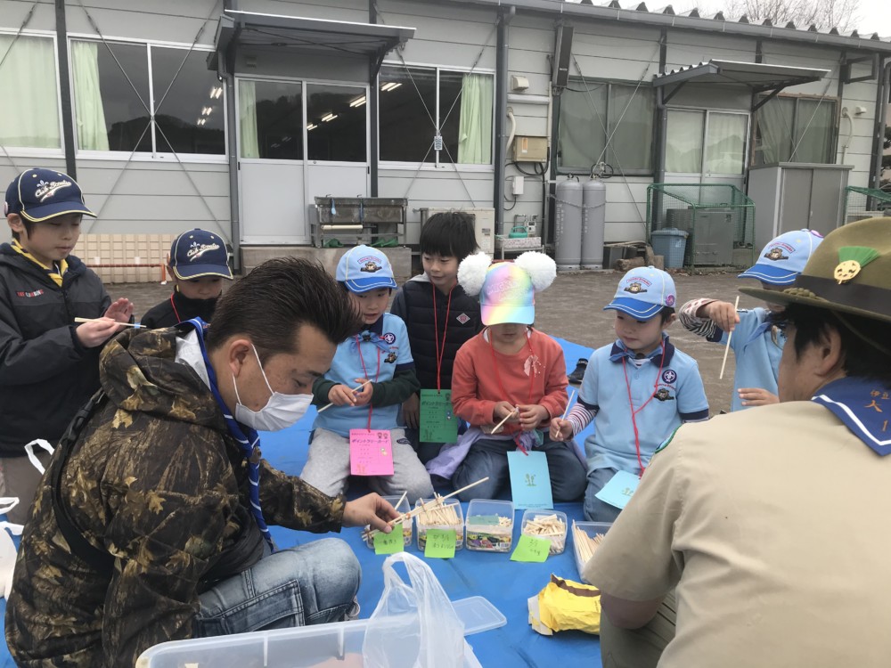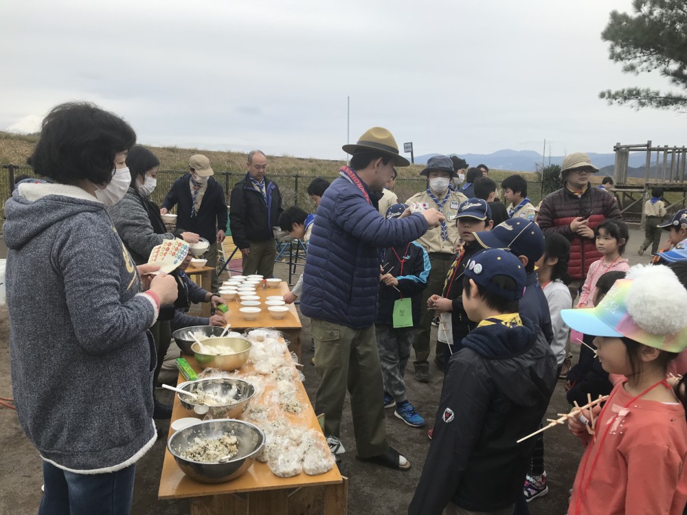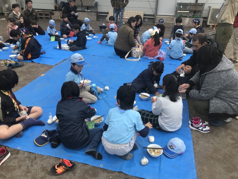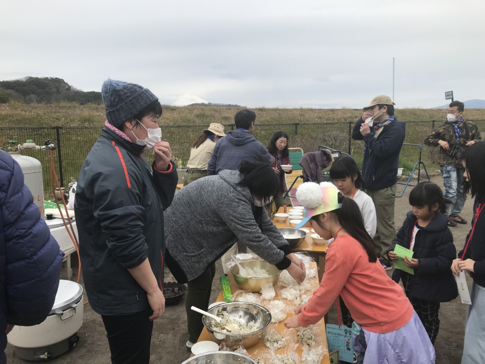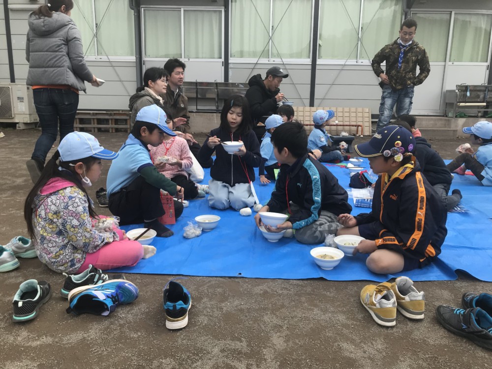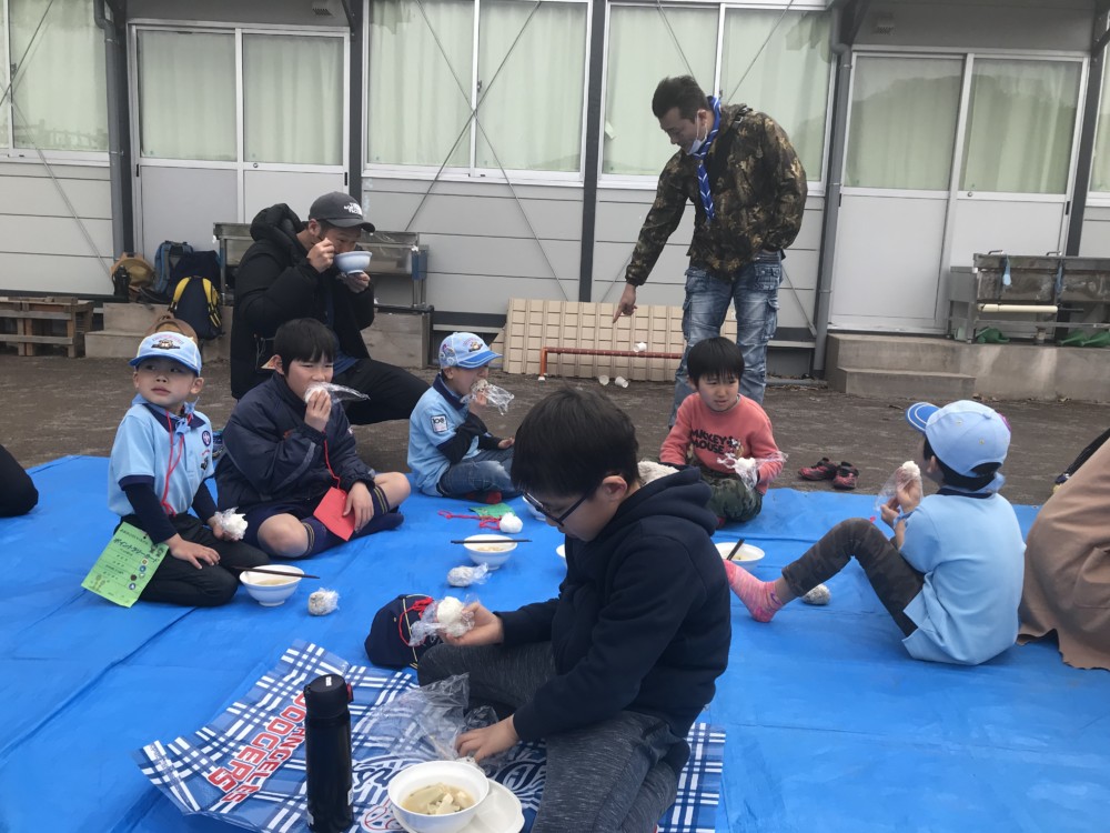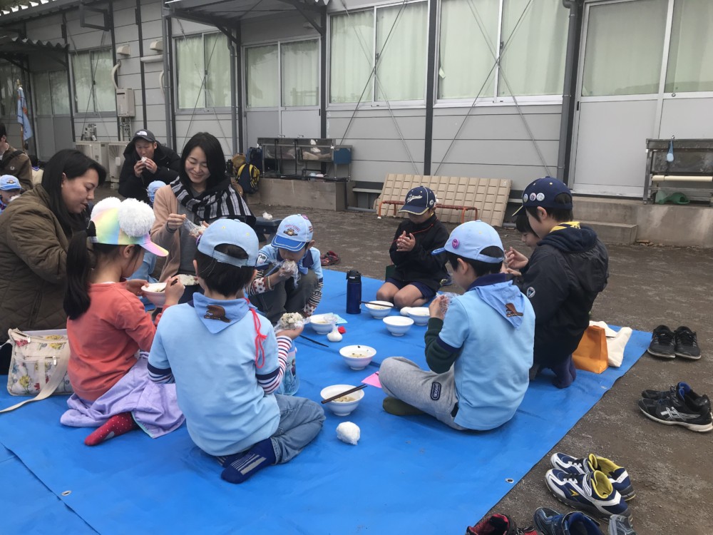 みんなでワイワイおにぎりと味噌汁をいただきました。