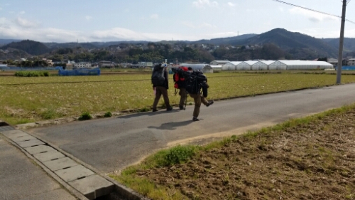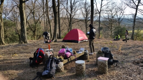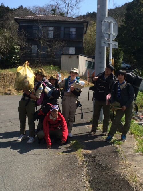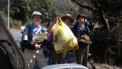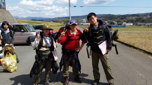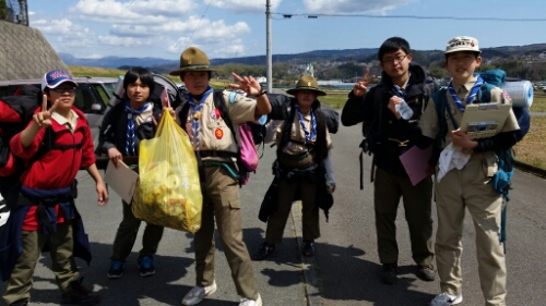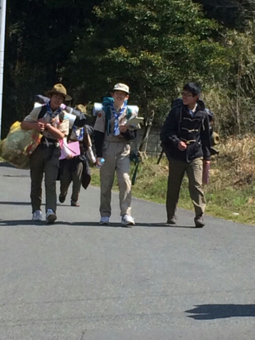 キャンプ道具、食材、テントをすべて自分達で担ぎ、往復21.5kmの行程を1泊キャンプをしながらのハイクに挑戦です。大仁BS隊では、これを終了しなければ正式に1級と認められません。1級の考査を終了した23WSJ参加スカウトも時間がなくて1級ハイクができないままでした。これで晴れて1級になることができます。