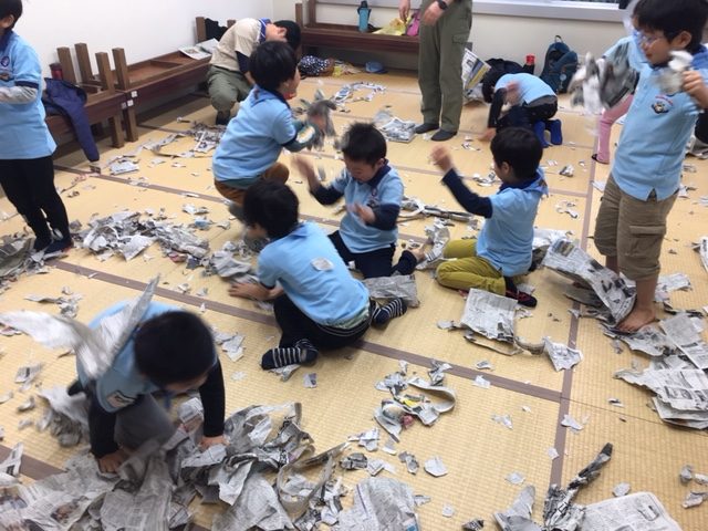 盛り上がった後は、新聞紙をきれいに片づけて・・・