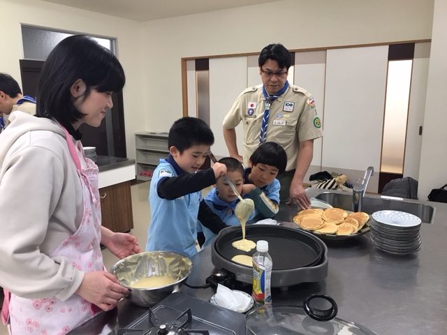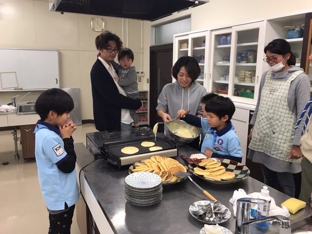 今回の活動は、みんなお楽しみのパンケーキ集会