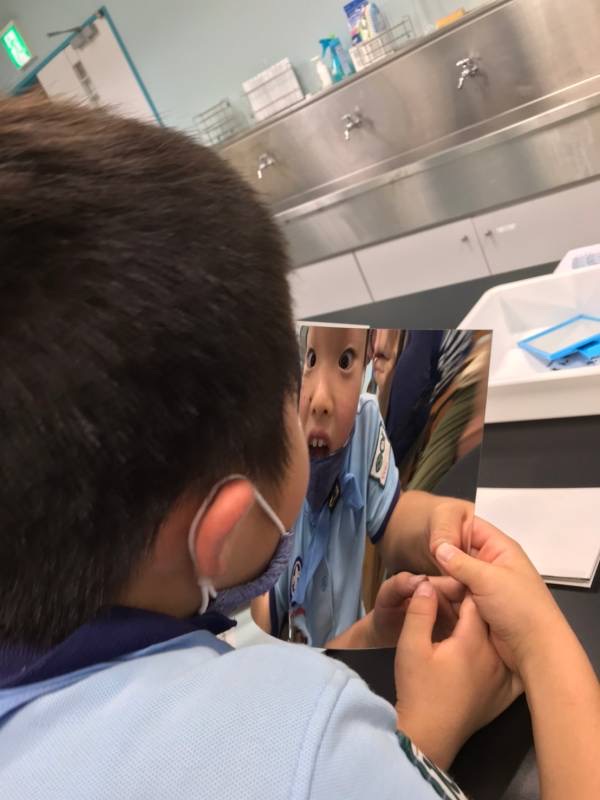 午後は実験ルームのイベントで 「鏡をつかってサイエンス」という 体験をしました。