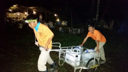 夜も仕事はたくさんあるぞ‼明日のために水汲みだ。