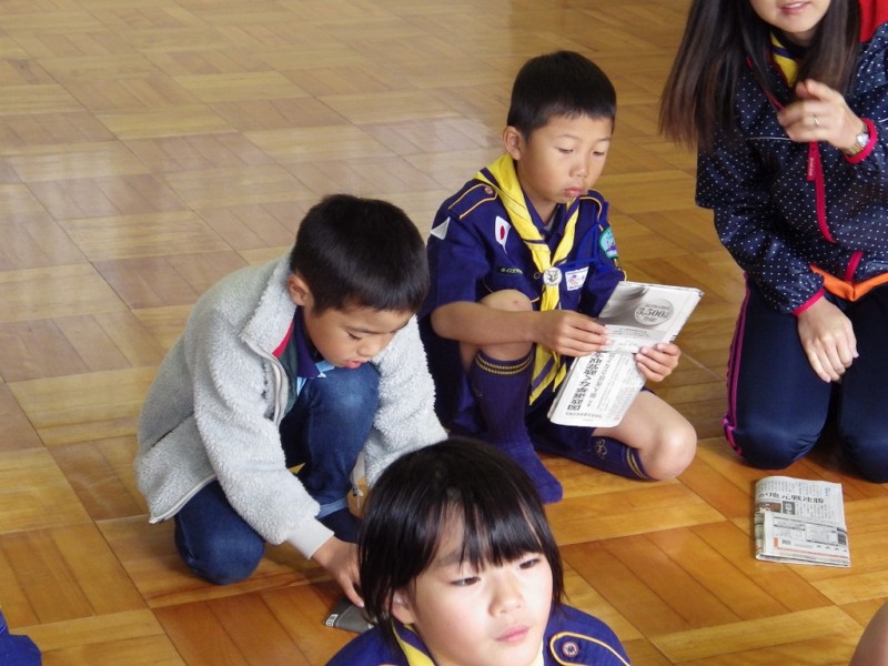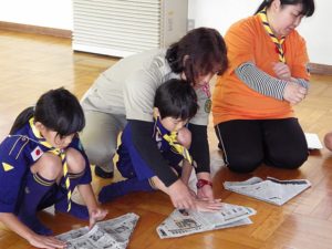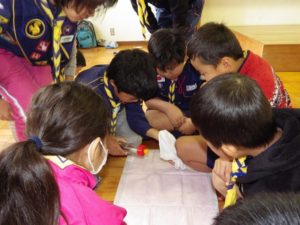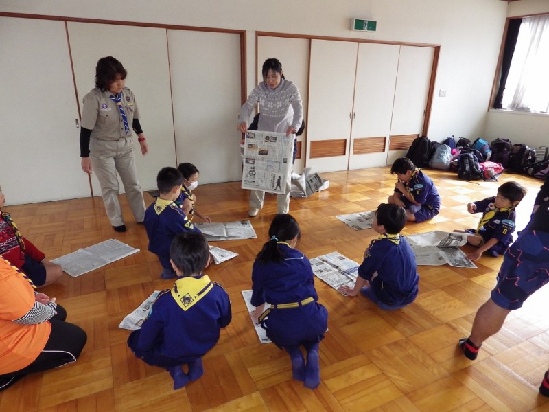 カブ隊とビーバー隊の合同活動 2016年11月27日 カブ隊 ビーバー隊 by bs-oohito-blog. 今日はカブ隊とビーバー隊でいっしょに活動を行いました。 セレモニーの様子 ゲームの様子 新聞紙を使ったゴミ箱・スリッパの作成 楽しそうに作ってました。(ビーバーも上手にできましたよ!) 2個目は自分たちだけで作れるようになったので、 お家でもいっしょに作ってください。 完成したスリッパ (子供モデルと大人モデルの履いたところ) 救急法についての勉強と実演 みんな真剣に聞いていました。 実演は特に楽しそうでした。 これで怪我したときにも安心だね! 前の記事 次の記事